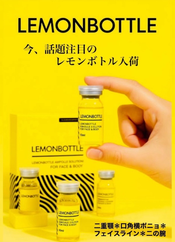 ・小顔リンパマッサージ (デコルテ・腕・肩、首、フェイシャル・ヘッドスパ) 1回13,200円→5,500円 3回39,600円→13,200円 ・レモンボトル (たるみ、 脂肪に! 3cc入れ込みのみ) 1回17,600円→7,700円 ・レモンボトルコース (たるみ、 口角ポニョ、 二重あごに3cc、 フェイシャルマッサージ 美溶液導入、 コラーゲン用LED、 ラッピングマスク) 1回 21,450円→13,200円 10回 214,500円→110,000円 |