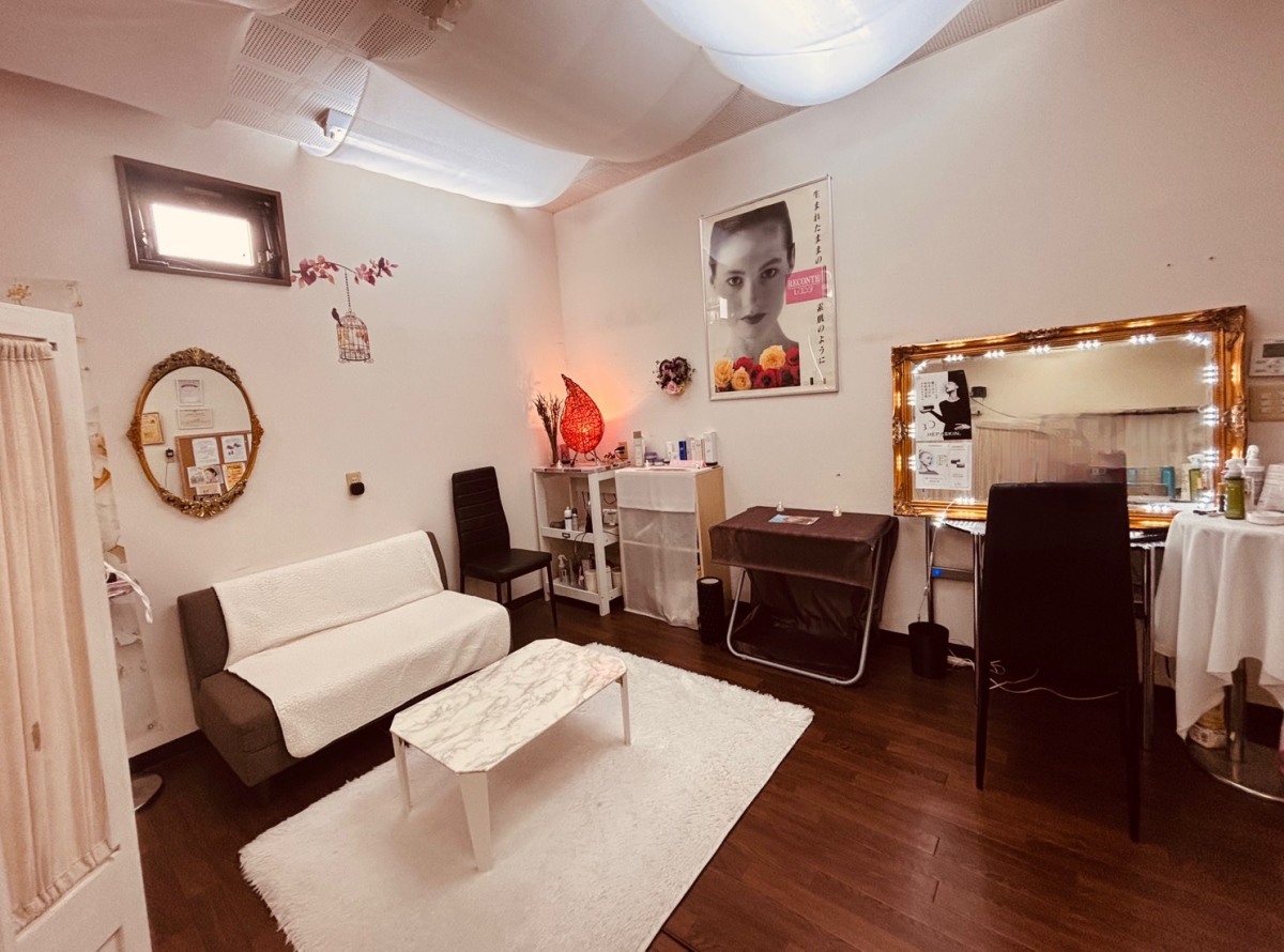 お客様とは1対1でお手入れできますので、お肌のお悩みや色んな楽しいお話をしながら施術できるサロンです。